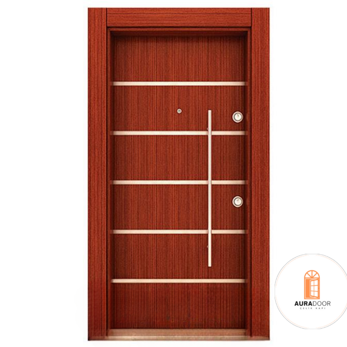 Çelik Kapı AU-031: Son dönemlerin en dikkat çekici Ahşap çelik kapı modelleri arasında olan ürün fiyatı ile oldukça uygun modeller arasında sayılmaktadır. Dayanıklı yapısı ve fiyatı ile dikkat çekmektedir. Çelik kapı ev dekorasyonunun başlangıç noktasıdır. Çelik kapı modelleri geçmiş zamanlarda sadece güvenlik amacı ile üretilmiş olsa dahi günümüzde güvenlik ve estetiği birleştiren çelik kapı modelleri hem güvenlik hem de estetik ihtiyacına göre hizmet vermektedir.Çelik kapı alırken dikkat edilmesi gereken hususların başında çelik kapı güvenlik temelli bir araç olduğu unutulmadan saç kalınlığı ve çelik kapı kilit sistemi ilk öncelik olarak belirlenmelidir. Çelik kapı modelleri içinde tarzınıza hitap eden modeli yakalamanız da oldukça önemlidir.